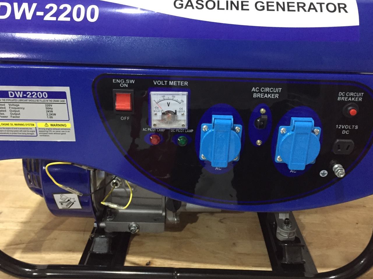 Máy phát điện sử dụng nhiêu liệu xăng, thiết kế nhỏ gọn tính di động cao. Máy phát điện DEWOO DW-2200 có công suất định mức 2000W; Công suất tối đa 2200W