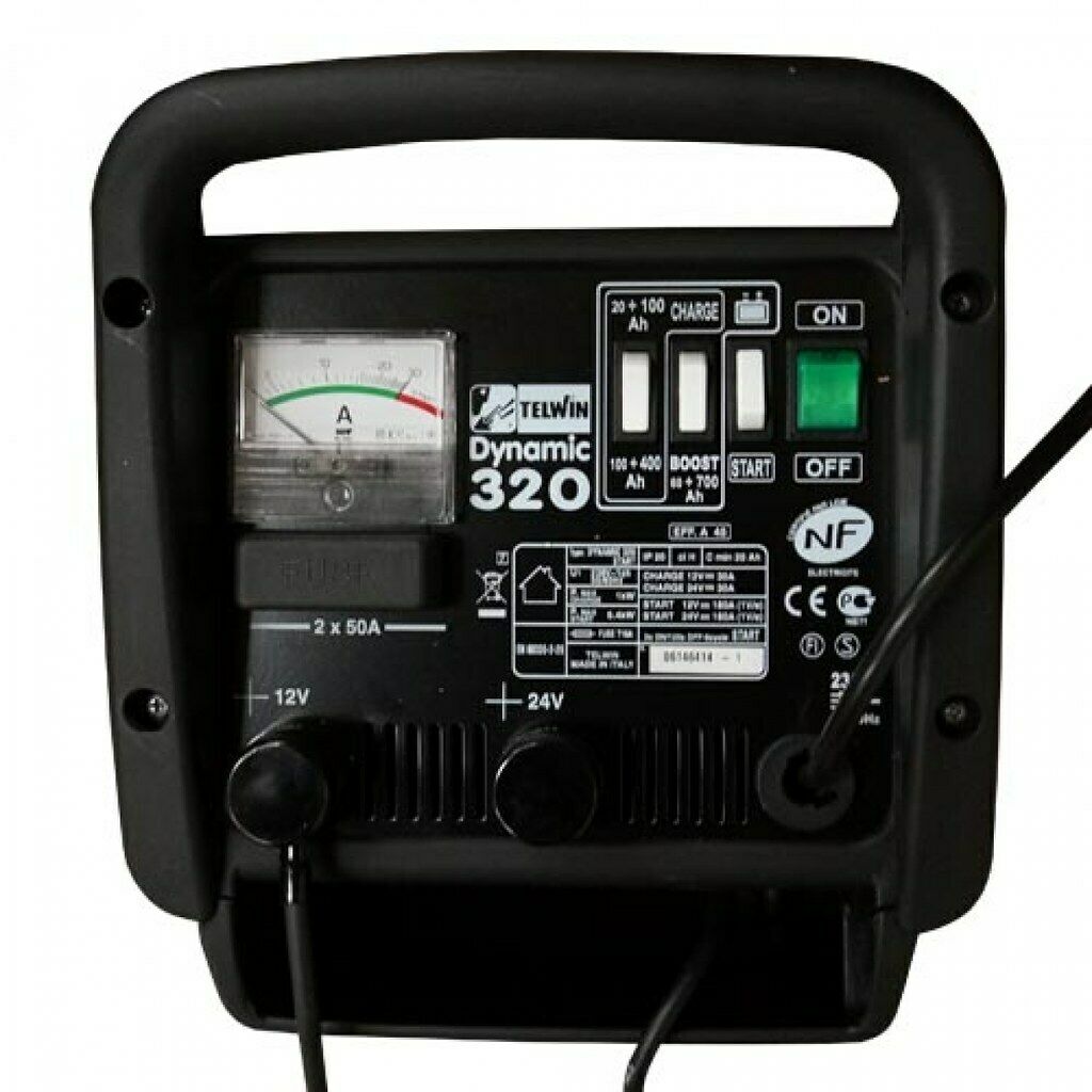 Tính năng sản phẩm: - Máy Sạc & Khởi Động Ắc Quy TELWIN DYNAMIC 320 START là bộ sạc dành cho bình ắc quy dòng WET với điện áp 12V/24V. Thích hợp để sạc ắc quy cho ô tô con, xe tải và xe tải nhẹ. - Cho phép lựa chọn giữa các chế độ: sạc bình thường, sạc nhanh (BOOST), khởi động nhanh - Có Ampe kế hiển thị rõ ràng dòng điện sạc và dòng khởi động - Tích hợp chức năng chống quá tải và đảo cực. Thông số kỹ thuật