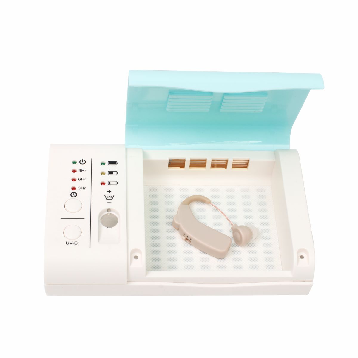 - Công nghệ UV-C: Máy sấy UV-C được thiết kế dùng tia UV-C (có cường độ rất thấp) mô phỏng ánh sáng mặt trời, có khả năng diệt khuẩn tiêu diệt vi khuẩn, virus, các mầm bệnh khác bằng cách vô hiệu hóa khả năng sinh sản của chúng. Hiệu quả vệ sinh, làm sạch máy trợ thính, khẩu trang, đồ trang sức, vật dụng cá nhân khác và tăng tuổi thọ của chúng.