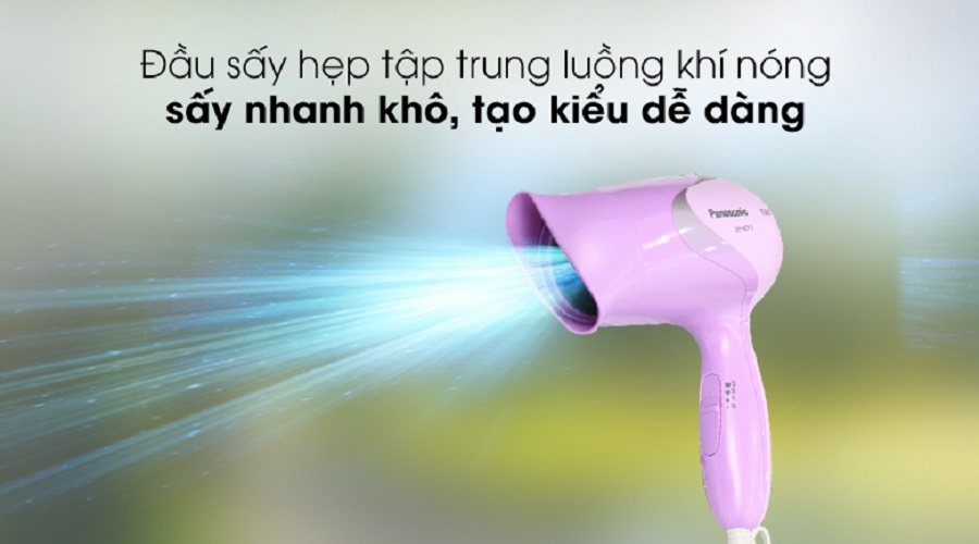 Máy sấy tóc Panasonic với thiết kế nhỏ gọn, dễ cầm nắm cùng công suất hoạt động mạnh mẽ 1800W giúp tóc nhanh khô, tiết kiệm thời gian sấy tóc Có 2 tốc độ sấy