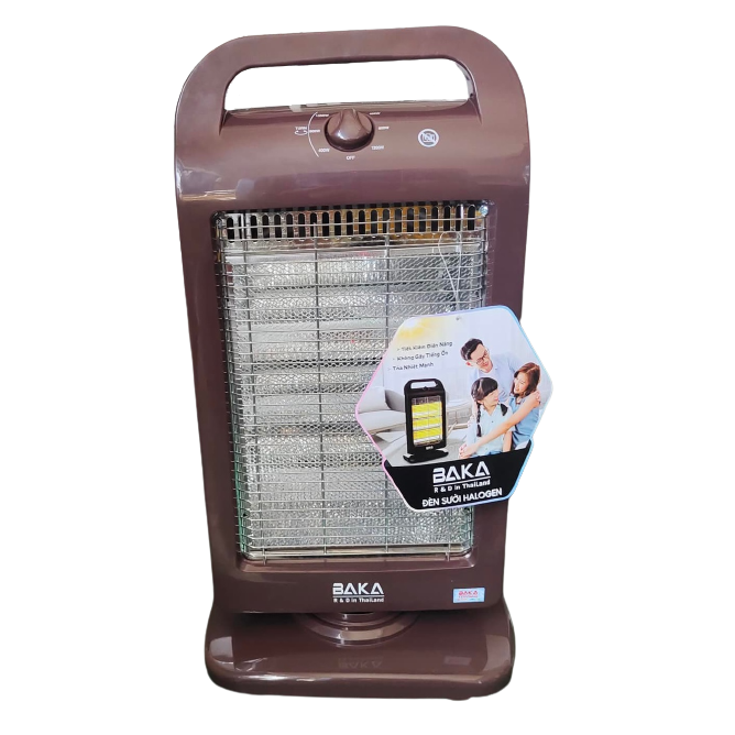 - Tự động ngắt điện khi quạt bị nghiêng hay đổ Máy Sưởi Đèn Sưởi Điện Hồng Ngoại 3 Bóng BAKA BK-103 - Hàng Chính Hãng là một trong những thiết bị sưởi ấm không thể thiếu tại gia đình trong mùa đông. Sản phẩm sử dụng đèn Halogen, tỏa nhiệt đều, làm ấm nhanh, không gây khó thở và khô da, đảm bảo an toàn cho người sử dụng. Kiểu dáng sang trọng, hiện đại Máy Sưởi Đèn Sưởi Điện Hồng Ngoại 3 Bóng BAKA BK-103 - Hàng Chính Hãng có thiết kế sang trọng hơn, kiểu dáng hiện đại và bắt mắt, nhỏ gọn tiết kiệm diện tích và phù hợp mọi không gian như phòng khách, phòng ngủ, Điều khiển dễ dàng bằng nút xoay Máy Sưởi Đèn Sưởi Điện Hồng Ngoại 3 Bóng BAKA BK-103 - Hàng Chính Hãng 400W, 800W, 1200W điều chỉnh bằng núm vặn linh hoạt theo 2 chiều giúp bạn dễ dàng lựa chọn được mức nhiệt phù hợp với môi trường và nhu cầu sử dụng. Chắc chắn, bền đẹp, an toàn Máy Sưởi Đèn Sưởi Điện Hồng Ngoại 3 Bóng BAKA BK-103 - Hàng Chính Hãng có chân đế vững chãi, lưới bảo vệ, tránh gây bỏng cho người dùng. Đặc biệt, lồng và vỏ nhựa phía sau chống cháy tuyệt đối, lưới tản nhiệt giúp sản phẩm không bị hư hỏng do quá nóng. TỎA NHIỆT ĐỀU, KHÔNG GÂY KHÔ DA Làm ấm cực nhanh, không gây khô da Máy Sưởi Đèn Sưởi Điện Hồng Ngoại 3 Bóng BAKA BK-103 - Hàng Chính Hãng sử dụng đèn halogen, làm ấm cực nhanh, độ bền vượt trội, chống chói mắt hiệu quả và không đốt cháy oxy nên không gây khó thở hay khô da khi dùng. Quay đảo chiều, tỏa nhiệt đều khắp phòng Sản phẩm có khả năng quay đảo chiều liên tục, giúp tỏa nhiệt đều khắp phòng, rất thích hợp khi sử dụng tại không gian rộng như phòng khách hoặc phòng có nhiều người. An toàn với người sử dụng Máy Sưởi Đèn Sưởi Điện Hồng Ngoại 3 Bóng BAKA BK-103 - Hàng Chính Hãng có chế độ tự động ngắt điện khi bị nghiêng đổ và hoạt động trở lại bình thường trở lại trạng thái an toàn. Thông số kỹ thuật