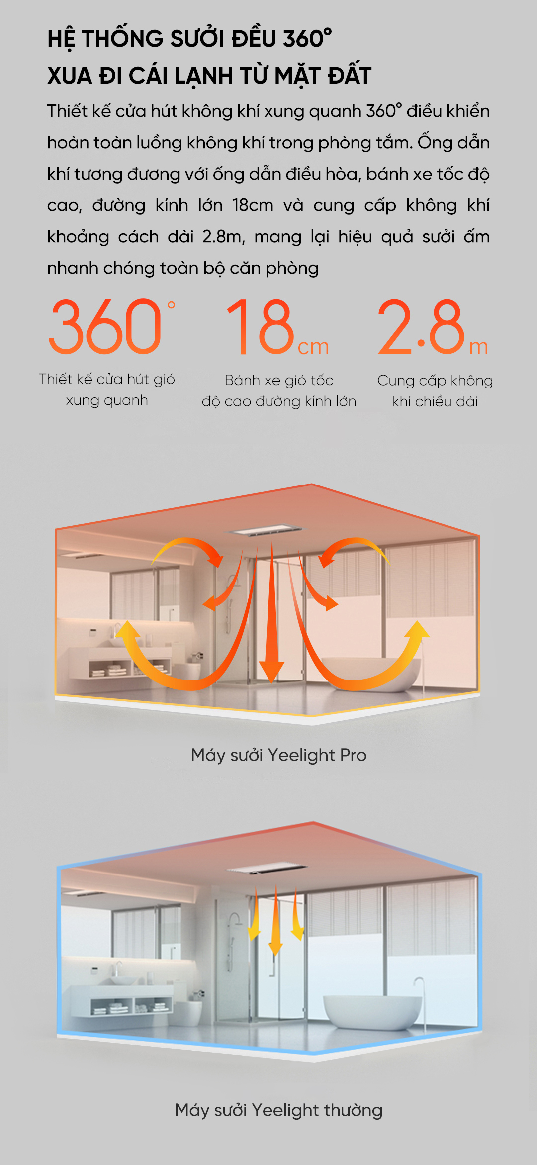 SIÊU HOT!!! Mẫu sưởi mới ra mắt T9/2022 - YLYYB-0010 được nâng cấp hơn về mọi mặt: thiết kế sang trọng hơn, công suất sưởi cao làm ấm nhanh hơn, đèn Ra 90 tốt cho mắt, màn LCD tích hợp trên thân máy hiển thị rõ thông số Lưu ý: Giá sản phẩm chưa bao gồm dịch vụ lắp đặt. =>>> Model 2022: YLYYB-0010 Chỉ số hoàn màu: Ra ≥ 90 Nhiệt độ màu: 4000k Nguồn sáng: 20W Công suất định mức: 2820W Công suất sưởi: 2800W =>>> Model 2020: YLYB005 ( mã cũ YLYB02YL - 2018) Chỉ số hoàn màu: Ra ≥ 80 Nhiệt độ màu: 4000k Nguồn sáng: 15W Công suất định mức: 2750W Công suất sưởi: 2700W =>>>Tích hợp tính năng sưởi – làm mát - chiếu sáng - thông gió - khử sương - sấy khô Vẫn với những tính năng tương tự thế hệ YLYB02YL, tuy nhiên Máy sưởi nhà tắm Smart Bath 8 in 1 Yeelight Pro YLYB005 được trang bị thêm bộ điều chỉnh hướng gió, kiểm soát luồng khí nóng ổn định, tỏa đều khắp không gian phòng tắm, đảm bảo nhiệt độ ở mọi vị trí là tương đương nhau, khiến bạn không còn sợ đi tắm trong những ngày trời trở lạnh. Đáng chú ý, thiết bị còn hỗ trợ điều chỉnh linh hoạt, nhạy bén 3 cấp độ nhiệt với khả năng làm tăng 15˚C chỉ trong vòng 3 phút. Nhờ đó mà bạn không phải mất thời gian chờ đợi lâu. Hơn nữa, chức năng sưởi sẽ giúp nhà tắm của bạn luôn được khô ráo hay cũng có thể trở thành phòng sấy đồ giúp hong khô quần áo, loại bỏ mùi hôi ẩm mốc gây khó chịu trong mùa mưa ẩm ướt. Song song đó, thiết bị còn được tích hợp quạt gió phát huy công dụng làm mát, làm việc hữu ích khi thời tiết oi bức. Đặc biệt với những nhà tắm có thiết kế tường kín thì Máy sưởi sẽ giúp làm thông thoáng, tạo không gian thoáng đãng, dễ chịu hơn. =>>> Điều khiển thông minh bằng nhiều phương thức Máy Smart Bath 8 in 1 Yeelight YLYB005 hỗ trợ người dùng sử dụng dễ dàng, thuận tiện ở mọi lúc mọi nơi thông qua phương thức điều khiển trực tiếp, qua ứng dụng hoặc chế độ rảnh tay. Cụ thể, bảng điều khiển cố định có hình minh họa cho phép bạn ấn thay đổi chế độ trực tiếp. Trong trường hợp muốn bật tắt thiết bị khi không có nhà người dùng có thể thực hiện trên app Mi Home. Phương thức đặc biệt nhất chính là dùng lệnh bằng giọng nói thong qua kết nối Bluetooth với các loại loa thông minh Al. =>>> Cấu trúc động cơ mạnh mẽ - bảo vệ an toàn Sở hữu kích thước 600 x 300 x 175.5mm, kiểu dáng bên ngoài không khác nhiều so với dòng máy trước của Yeelight, Máy sưởi nhà tắm Pro YLYB005 đã được thay đổi một số chi tiết trong cấu trúc nhằm cải thiện chất lượng sản phẩm. 10 lớp bảo vệ từ cấu trúc vật liệu, bộ xử lí phần mềm đến cài đặt bảo mật đều được tính toán chi tiết, đảm bảo làm việc ổn định, giúp kéo dài tuổi thọ đến hơn 15000 giờ.
