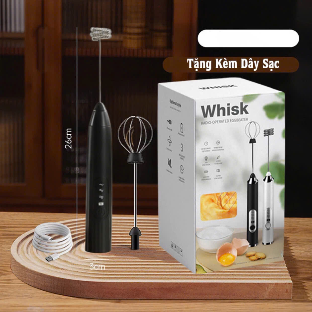 Máy tạo bọt cà phê cầm tay sạc điện, máy đánh trứng mini, máy khuấy cafe 3 cấp độ   * Thông tin cây khuấy cafe: - Tên thương hiệu trên vỏ hộp: whish../wise...