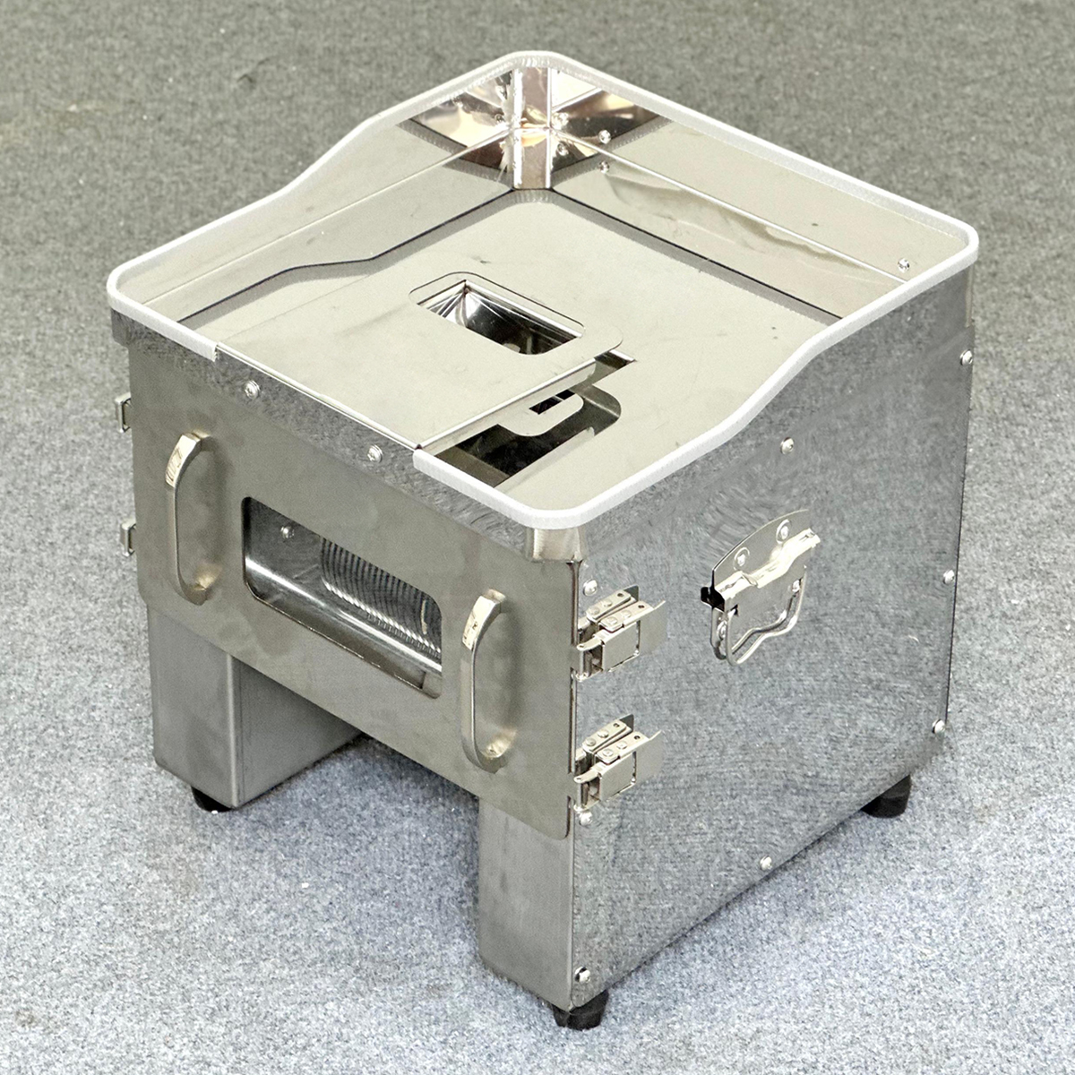 Bởi vì thiết kế nắp lật bên trên dao, nên khi cần vệ sinh hay xử lý thịt chỉ cần lật nắp máy đã có thể xử lý toàn bộ dao, không cần rút dao ra.