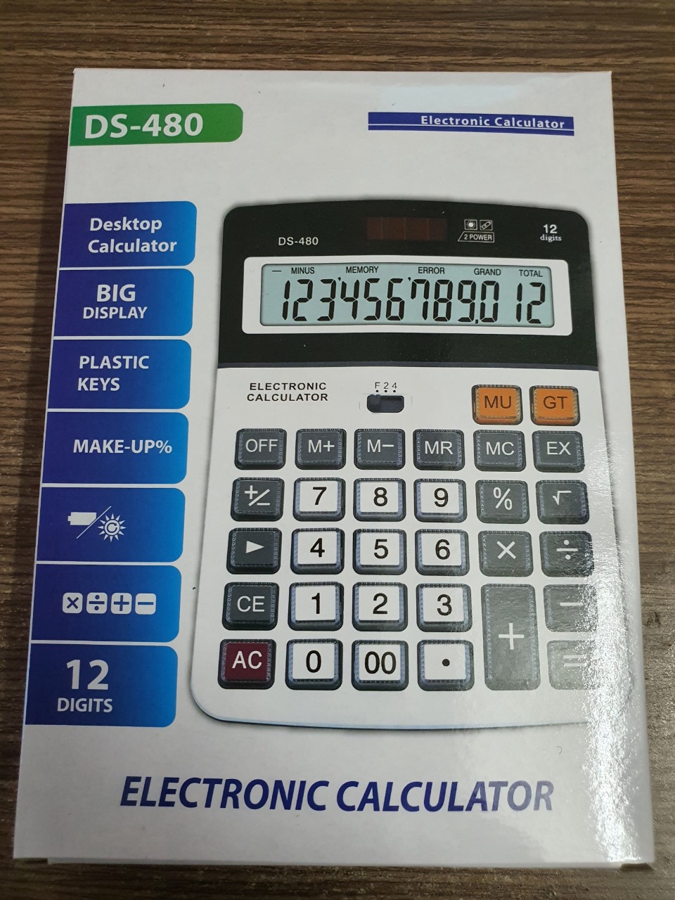 Máy tính mini cầm tay DS-480 dùng pin 3A và năng lượng mặt trời, màn hình lớn, gồm 12 chữ số dễ nhìn