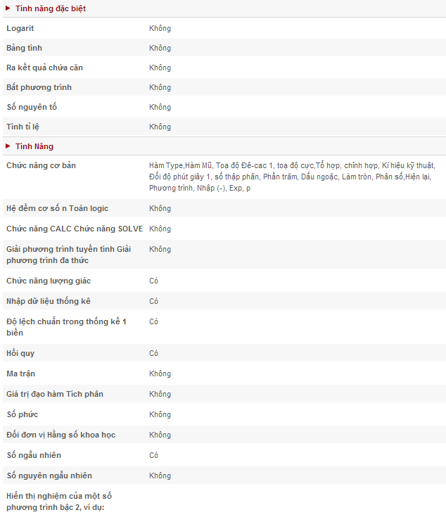 - Chuyên dùng cho học sinh cấp 2 và 3, Đại học. - Tính Năng Chi Tiết: + Số tính năng:  453 Tính năng + Màn hình:  thể hiện 15 số và hiển thị như sách giáo
