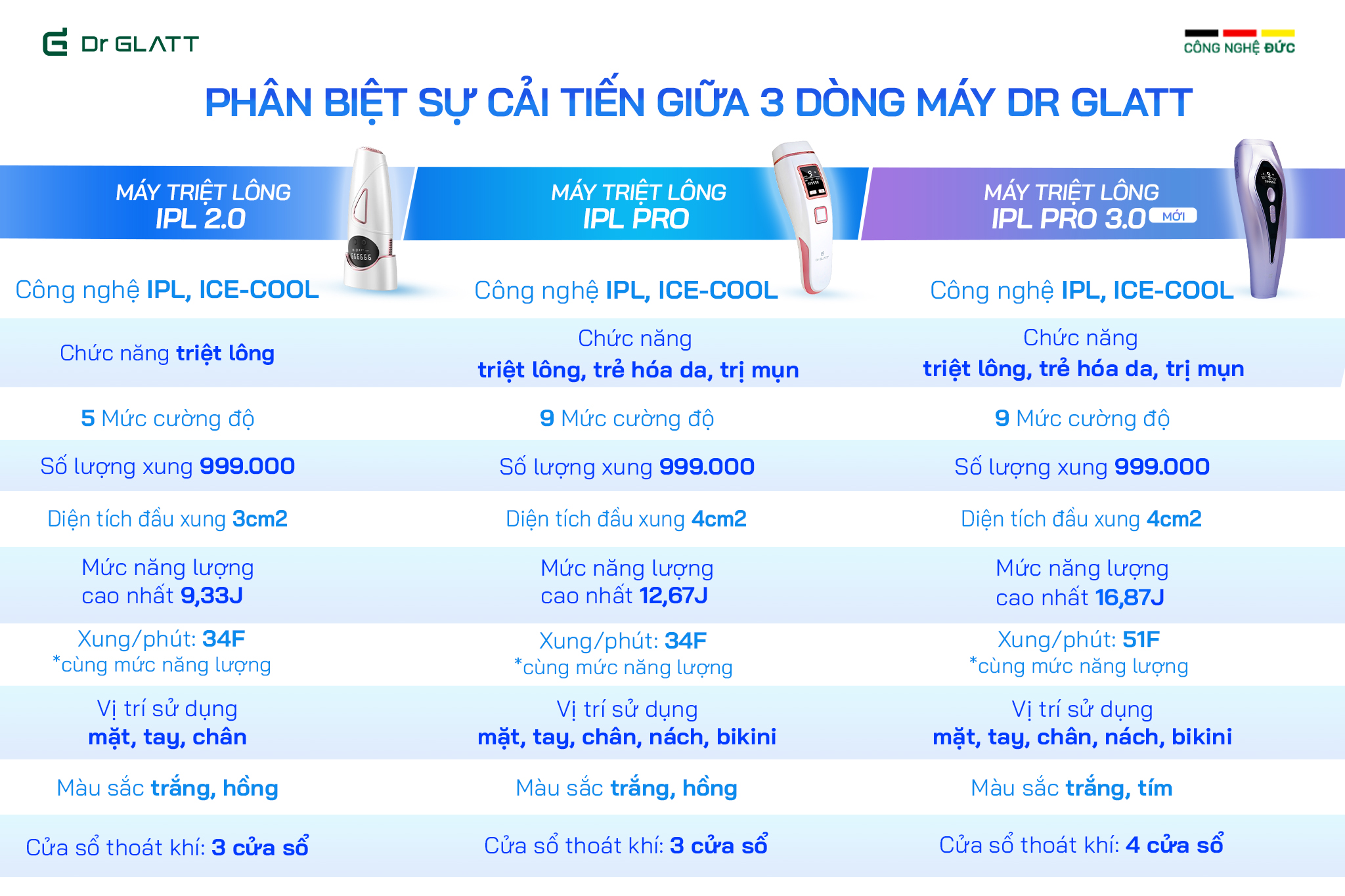 MÁY TRIỆT LÔNG ĐA NĂNG IPL PRO 3.0 DR GLATT HÀNG CHÍNH HÃNG THƯƠNG HIỆU ĐỨC