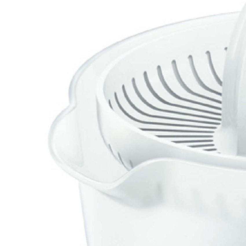 Thiết kế đẹp mắt Máy Vắt Cam Tiross TS1392 có thiết kế kết hợp hai màu trắng xanh lá trang nhã, đặc biệt với chóp nón liên tục xoay trái và phải để tách nước trái