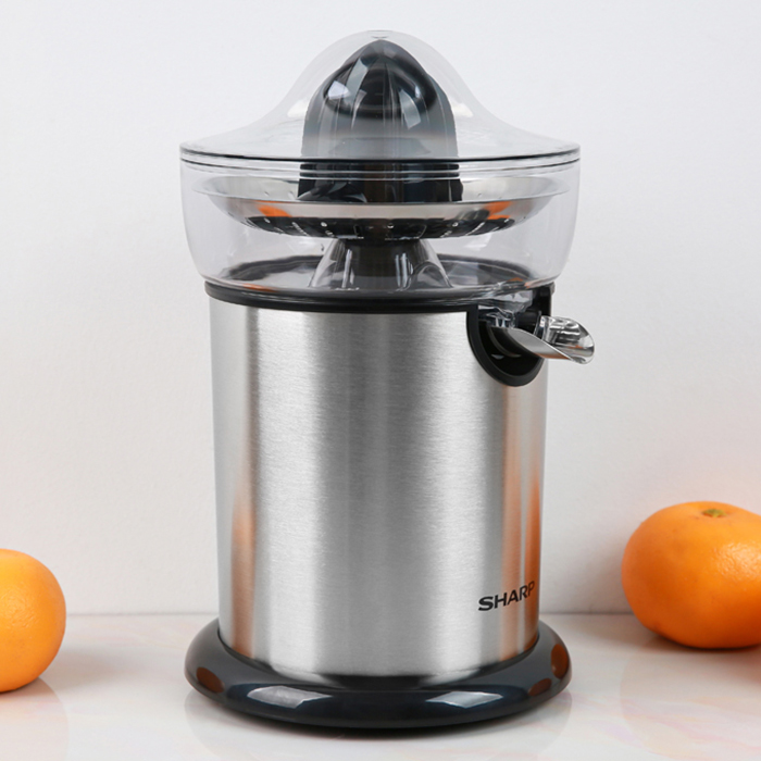 Máy vắt cam Sharp thiết kế gọn nhẹ, màu trắng sáng tươi trẻ, có tay cầm chắc chắn Chuyên dụng để vắt các loại hoa quả họ cam như cam, bưởi, quýt, chanh,… đáp ứng nhu