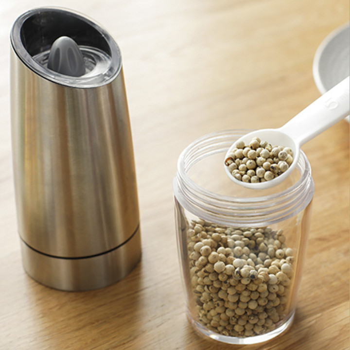 - Được sử dụng như cả máy xay tiêu điện và máy xay muối tự động với thao tác một tay đơn giản.