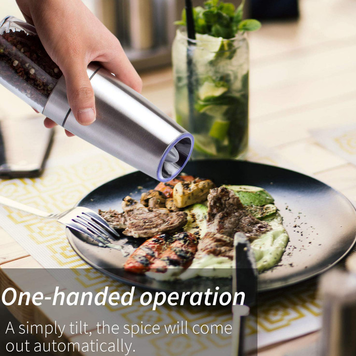 Máy xay hạt tiêu và gia vị cầm tay GB-5089 - Thiết kế đặc biệt của trọng lực được kích hoạt và tự động bật khi bạn nghiêng nó để gia vị thức ăn của