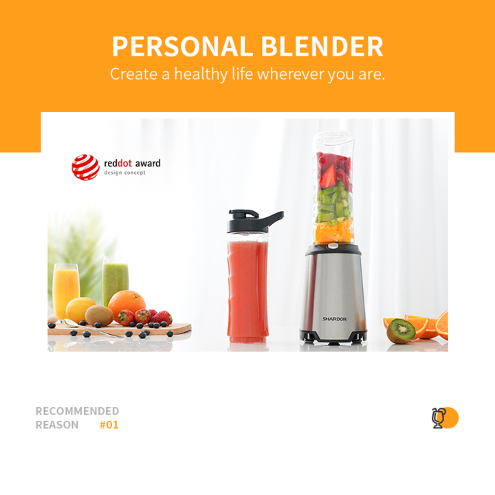 Máy Xay Sinh Tố 2 Ly thương hiệu cao cấp Shardor PB615B - HÀNG NHẬP KHẨU