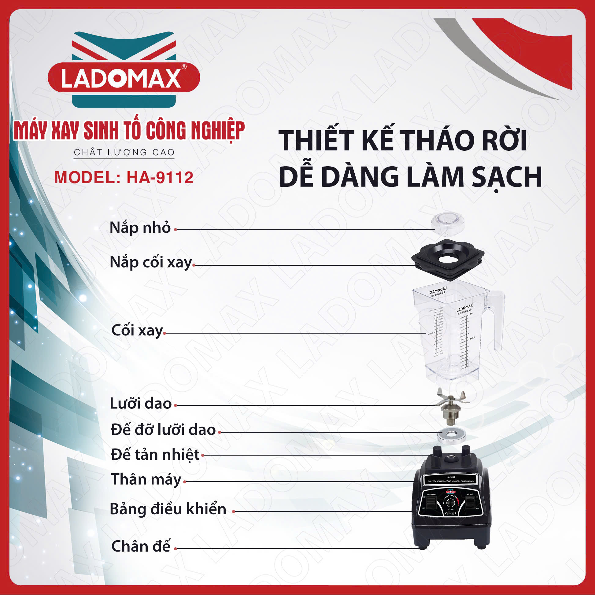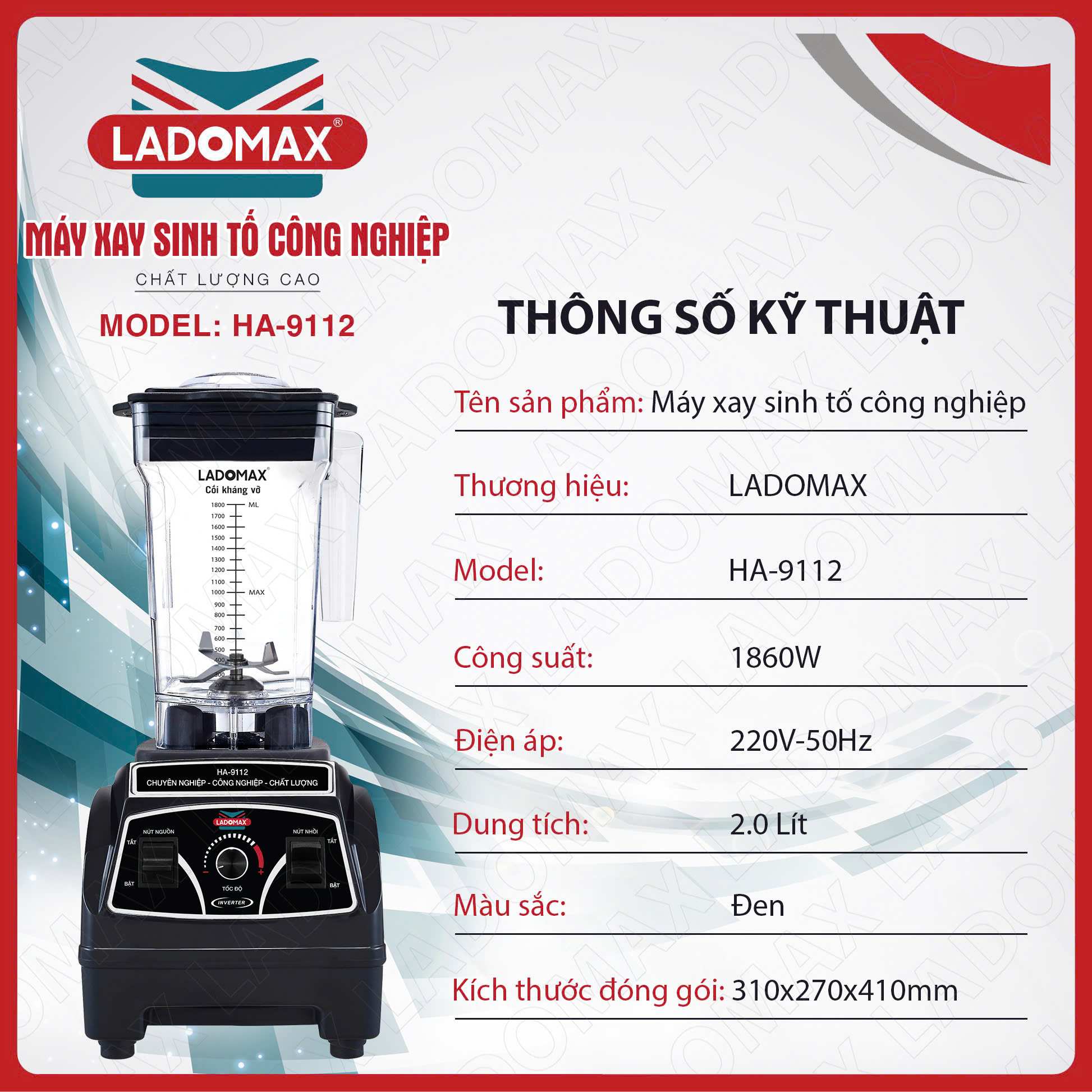 ✨Máy xay sinh tố công nghiệp 1860W Ladomax HA-9112 xay đá, rau má, sinh tố chuyên quán - Hàng chính hãng