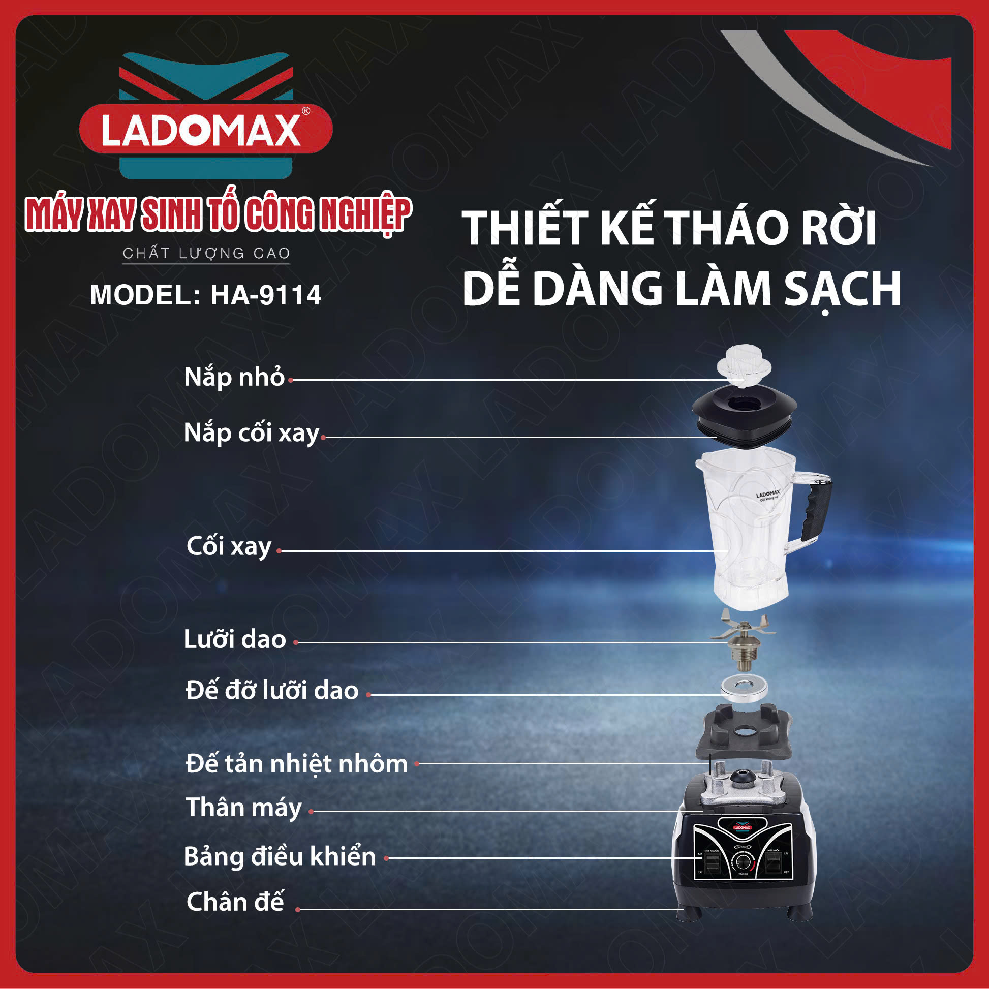 THÔNG SỐ KỸ THUẬT Máy xay sinh tố giảm ồn Lamaca - Model: LA-68 - Điện áp: 220-230V/50Hz/1Pha / – Công suất điện: 2000W - Kích thước đóng thùng: 290 x 280 x 540 mm -
