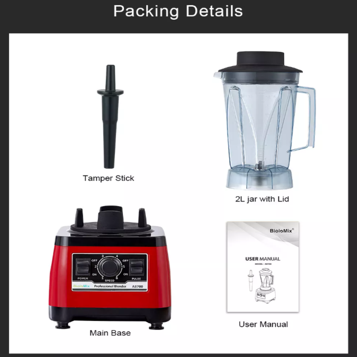 – Thương hiệu: BioloMix – Model: A8800 – Điện áp: AC 220V ~ / 50-60Hz – Công suất: 2200W (3HP) – Dung tích cối xay: 2L (2000cc) – Loại điều khiển: Push button, 6 nút