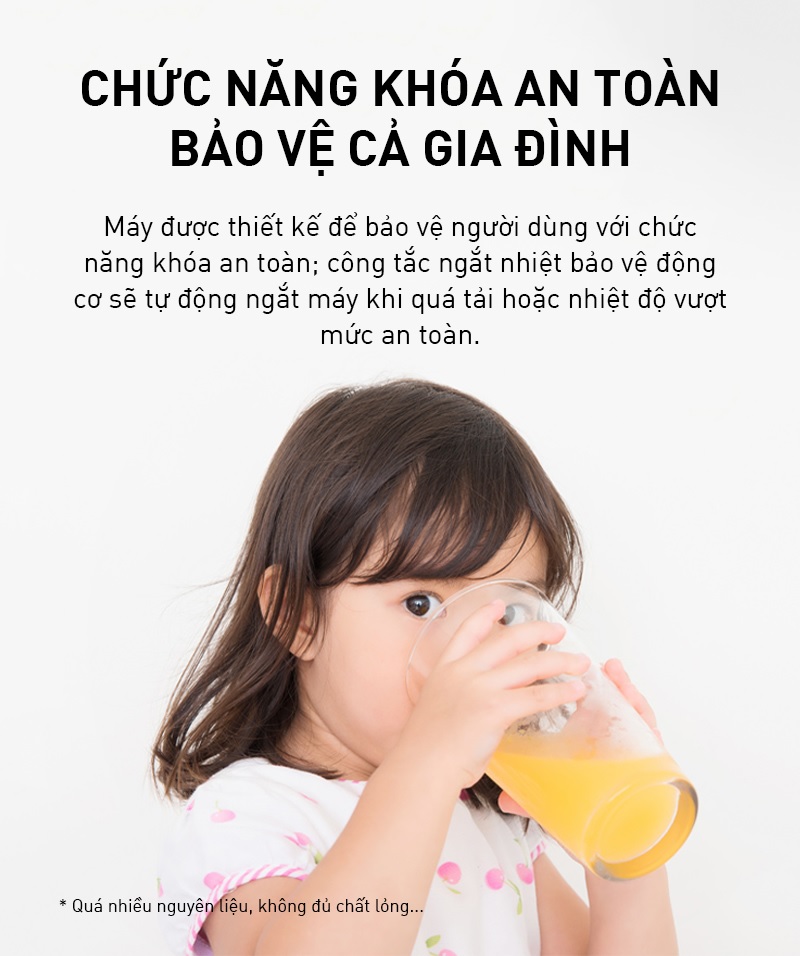 Công nghệ hút chân không giữ nguyên dưỡng chất Cối xay không chứa chất BPA an toàn cho người sử dụng Điều khiển cảm ứng Hộp chống ồn giảm thiểu tối đa độ ồn Thiết