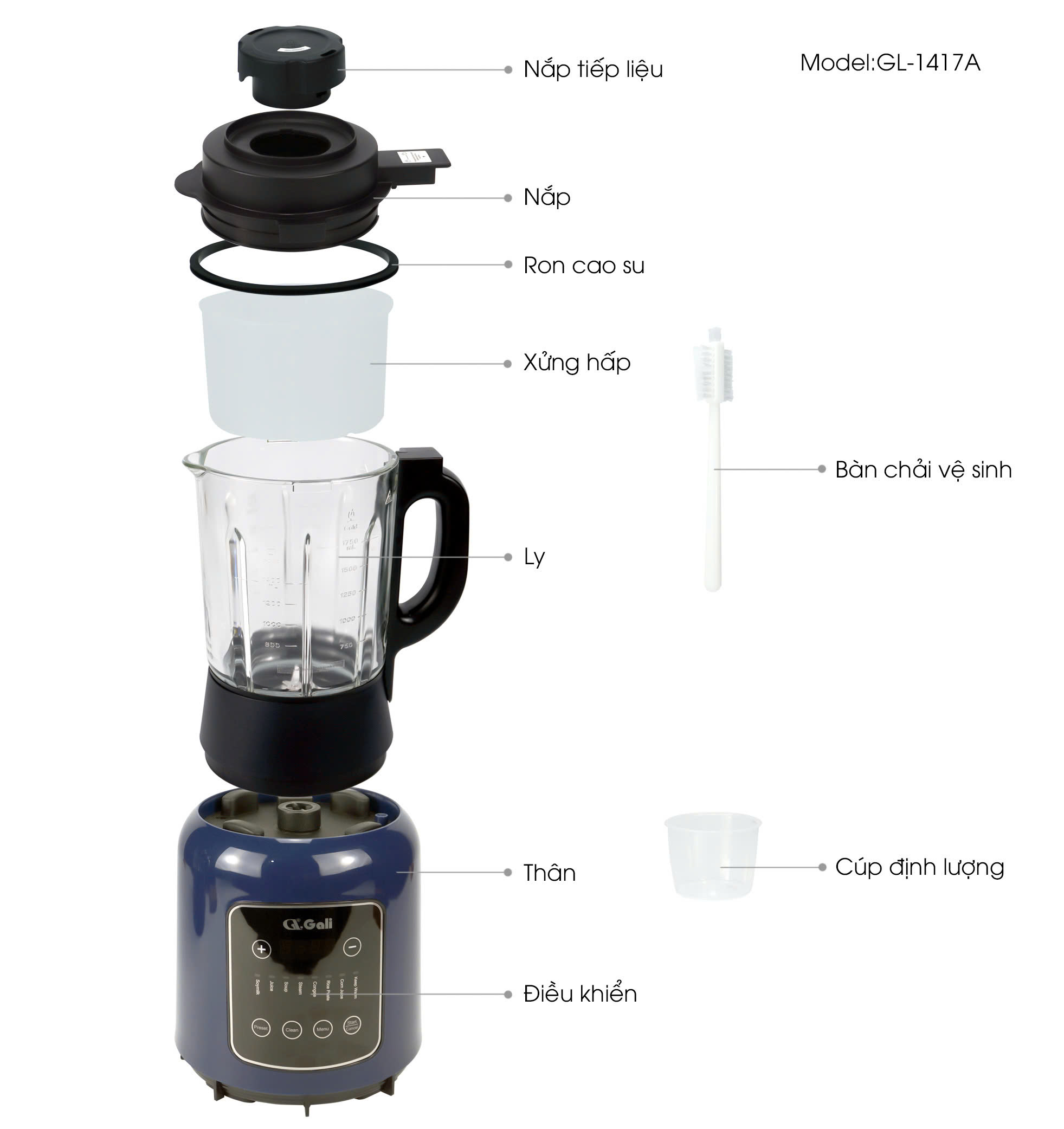 Đặc điểm nổi bật máy chế biến sữa hạt Gali GL-1417A 1.75 lít Nguồn điện : 220V/50Hz. Công suất xay 600W.Công suất nấu 800W. Dung tích : 1,75 lít. Cấu tạo cối thủy tinh,dao xay
