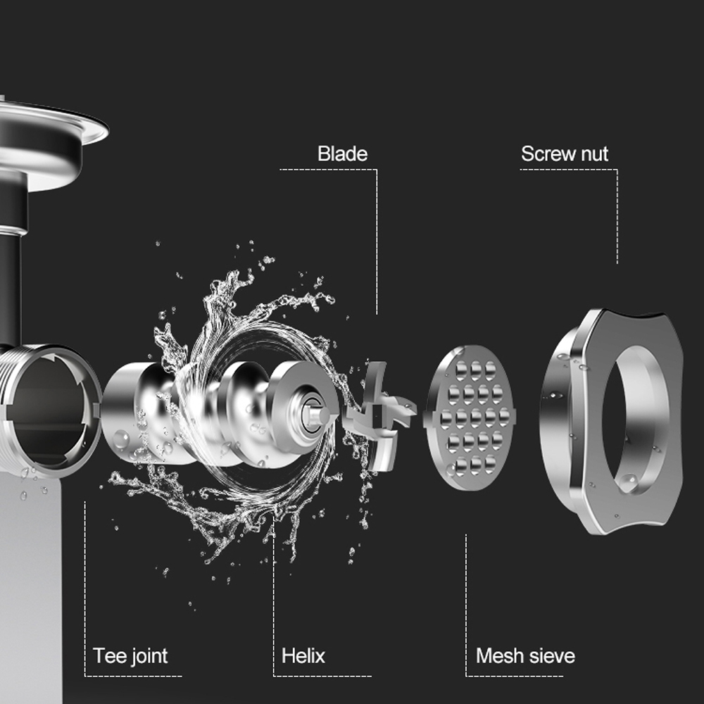 - Thiết kế đẹp mắt và nhỏ gọn, toàn bộ máy được làm bằng inox sáng bóng chống hoen gỉ, cho máy xay thịt luôn có vẻ ngoài sạch và đẹp và đảm bảo an toàn thực phẩm.