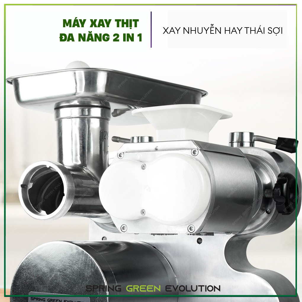 Máy Xay Thịt Công Nghiệp SGE MGF Đa Chức Năng Với 2 Đầu Xay Và Cắt, Tiêu Chuẩn Inox304