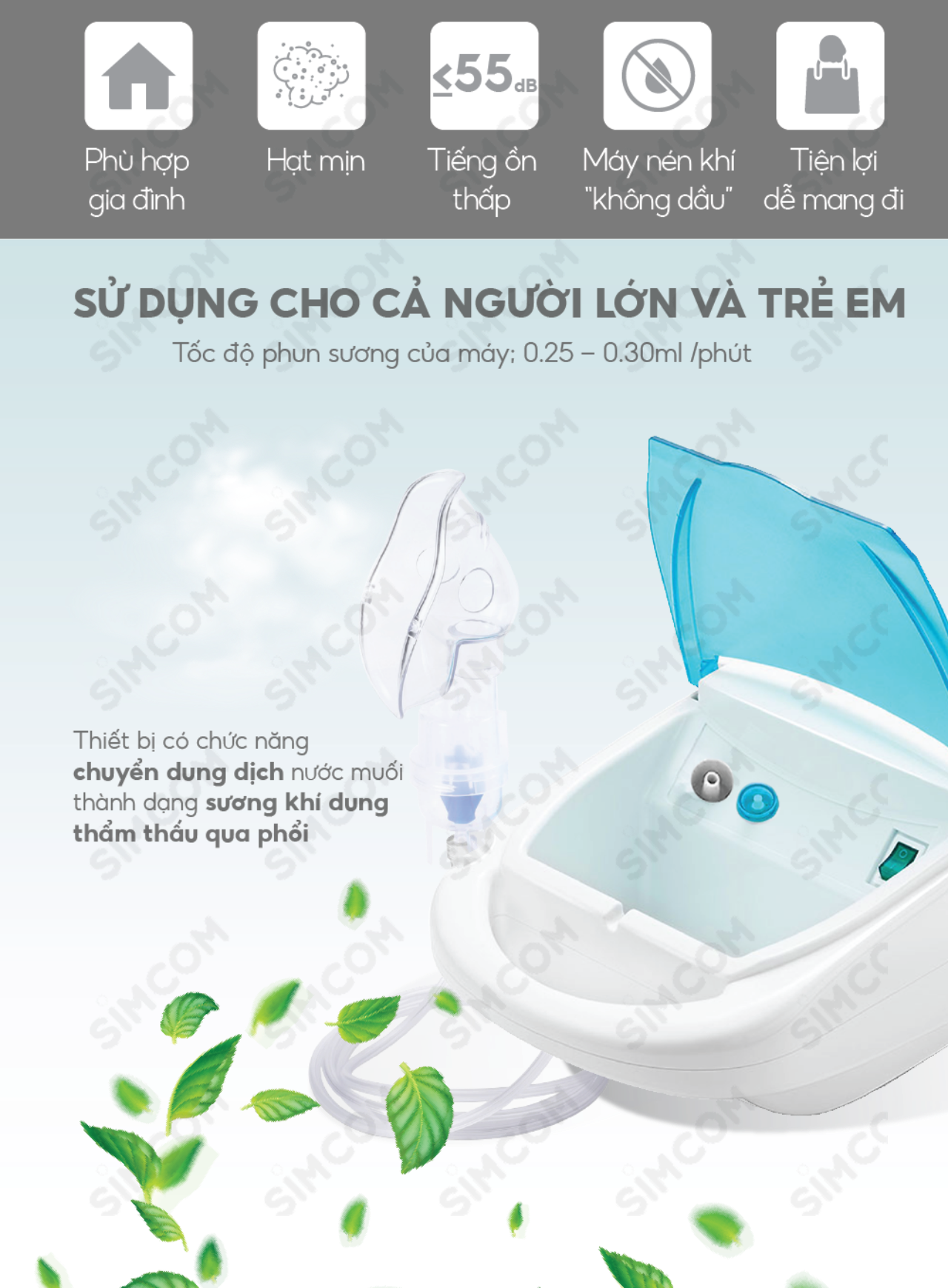 Máy xông mũi họng khí dung hạt siêu nhỏ được chứng nhận MDD • Phun sương bằng công nghệ khí nén • Điều ị mục tiêu các bệnh về đường hô hấp trên và dưới