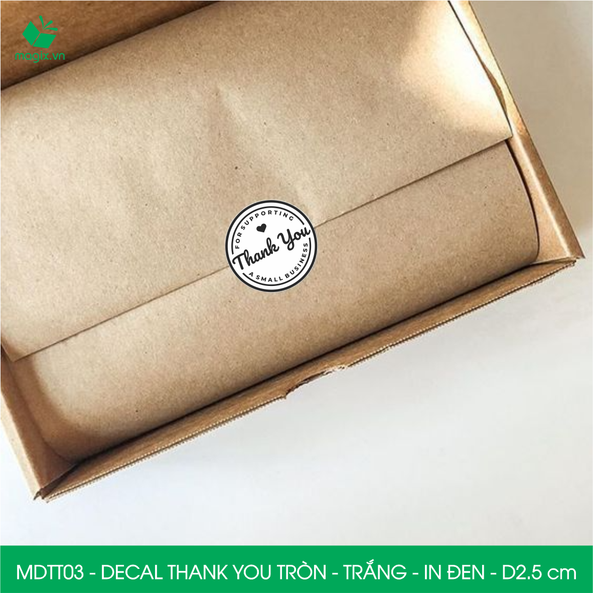 Decal - sticker Thank You là loại nhãn dán có nội dung "Cám ơn" được thiết kế theo hình chữ nhật. Decal Thank You thường được sử dụng để trang trí đóng gói thời trang,