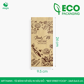 • MFT1N4NN - Túi bánh mì nâu in nâu đỏ - "Best street food" - 24x9.5x4.5 cm
