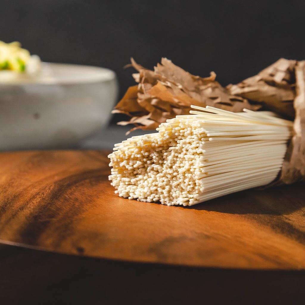 Nguyên liệu được tuyển chọn nghiêm ngặt, đem đến chất lượng hảo hạng Sợi mì Somen có màu trắng đục, nhỏ mảnh & dai Thích hợp dùng chế biến món mì lạnh thanh mát hoặc