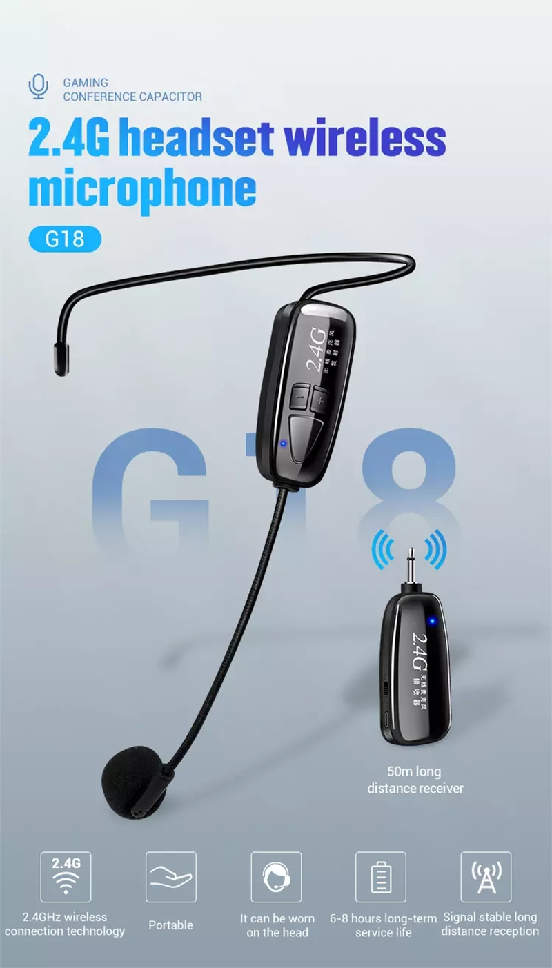 G18 2.4G Wireless Microphone Headset Mic Voice Amplifier Speaker cho Điện Thoại SmartPhone, Android, Trò Chơi Trực Tuyến, Giảng Dạy, Livestream