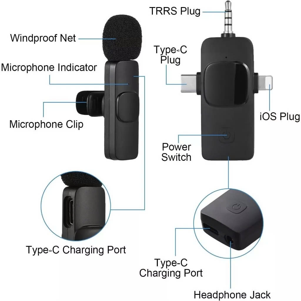 - Cắm vào và dùng ngay, không cần ứng dụng hỗ trợ. Chỉ cần gắn micrô vào cổ áo, gắn đầu thu với thiết bị của bạn và bật micro để kết nối tự động.