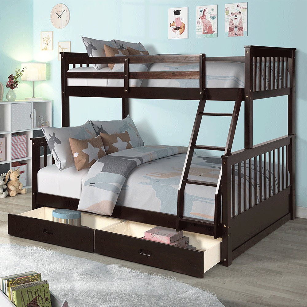 + Chất liệu: Khung giường gỗ thông Newzealand, phân tầng, Vách, đáy hộc gỗ công nghiệp, thang giường MDF chịu lực + Kích thước: kích thước phủ bì, tầng trên ưới 1mx2m Giường tầng hộp