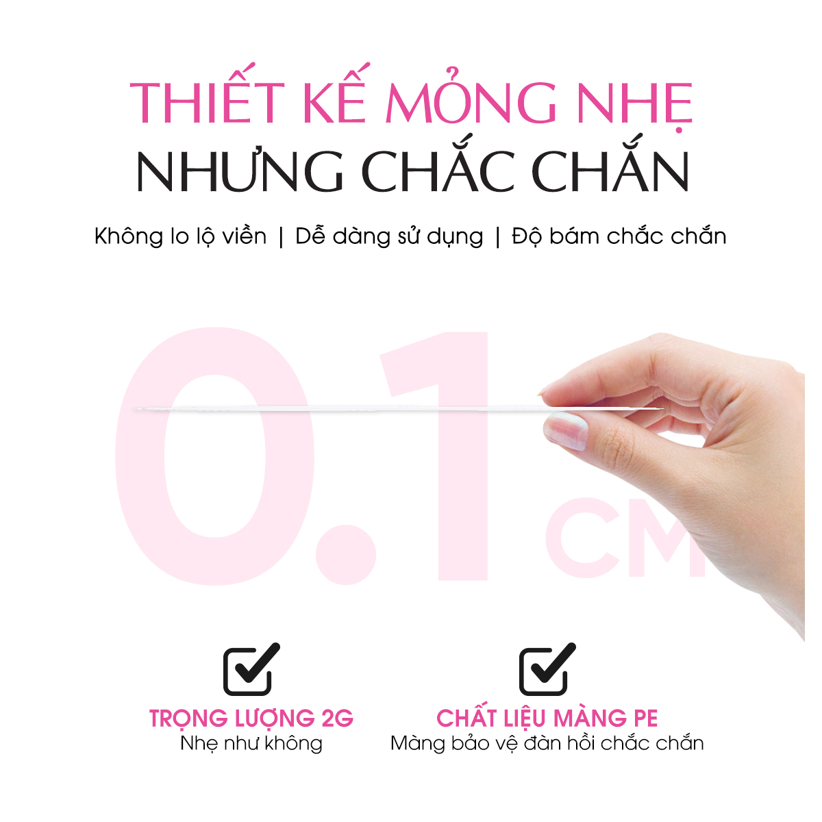 - Siêu mỏng, không lộ viền khi sử dụng