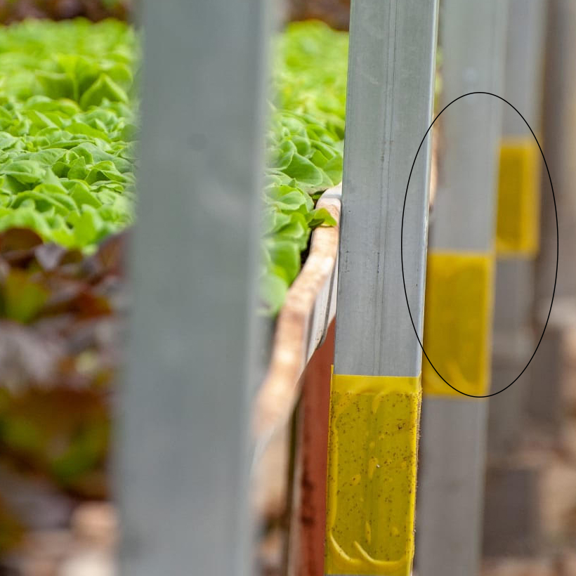- Cấu tạo: Miếng dính vàng bẫy côn trùng dùng màu vàng yêu thích và dẫn dụ côn trùng dính vào và dẫn đến cái chết của nó