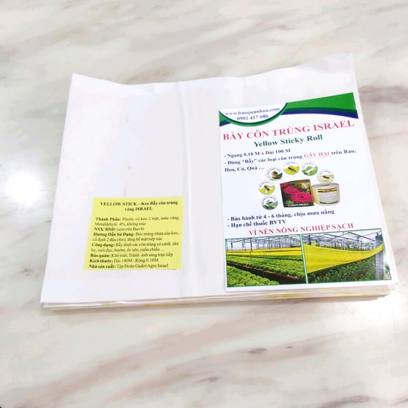 Keo dính vàng bẫy côn trùng gây hại nông nghiệp nhập khẩu Israeo như bẫy Ruồi, bẫy bọ phấn, bẫy rầy