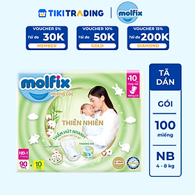 ✨Miếng lót sơ sinh Molfix Thiên nhiên Super Jumbo Newborn 1 (dưới 1 tháng tuổi) - Gói 90+10 miếng