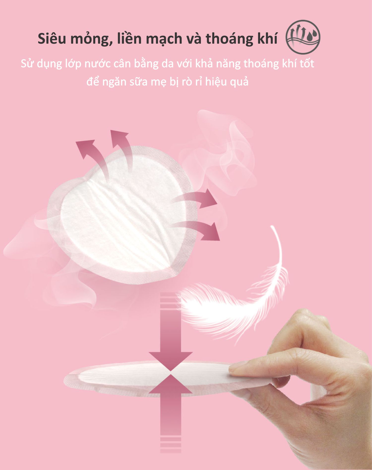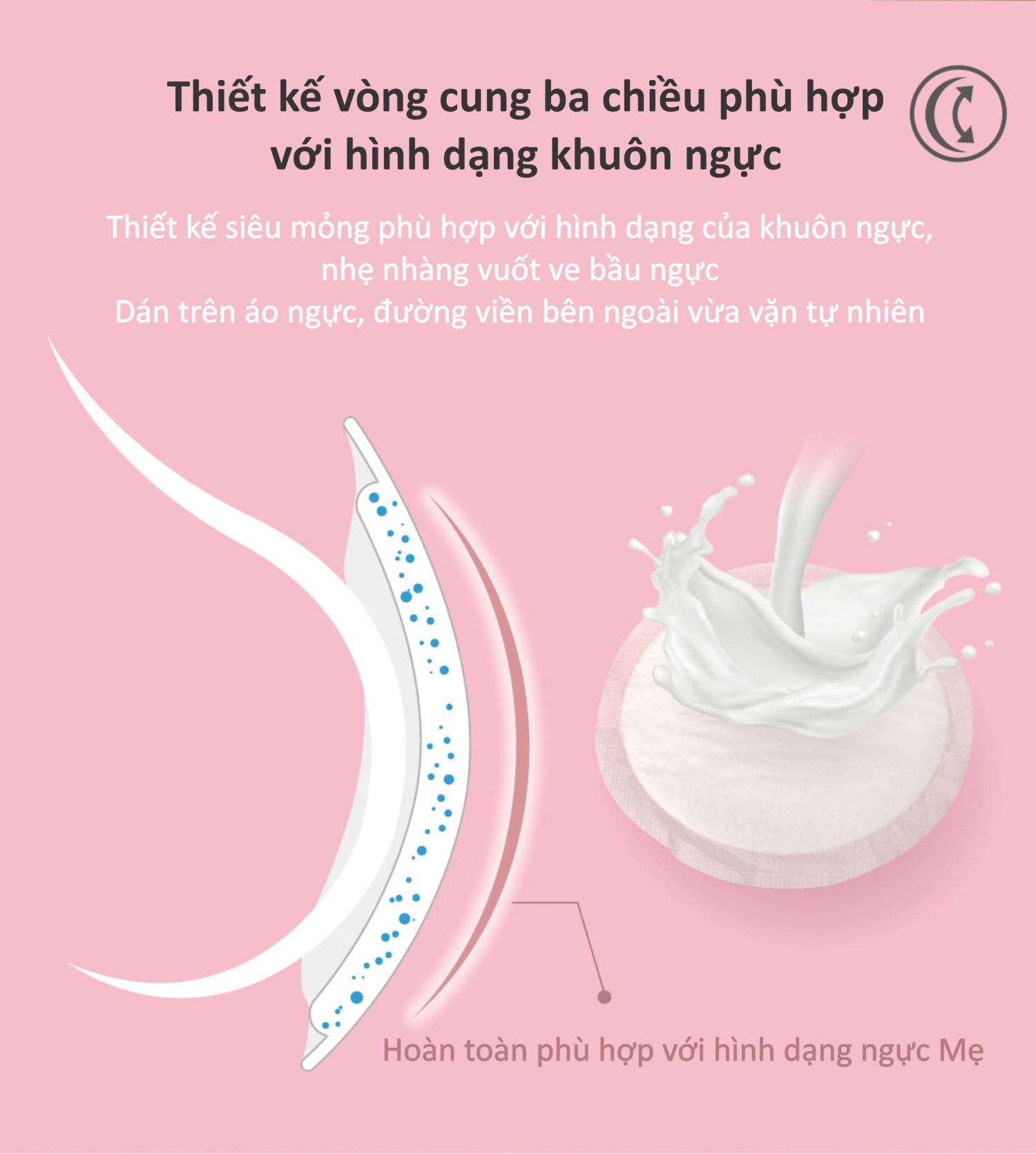 - Thấm hút tức thì lên đến 150ml sữa và chống thấm ngược trở lại; - Siêu mỏng chỉ 0,07cm, liền mạch, ôm sát ; - Co giãn 3 chiều, dễ điều chỉnh để vừa