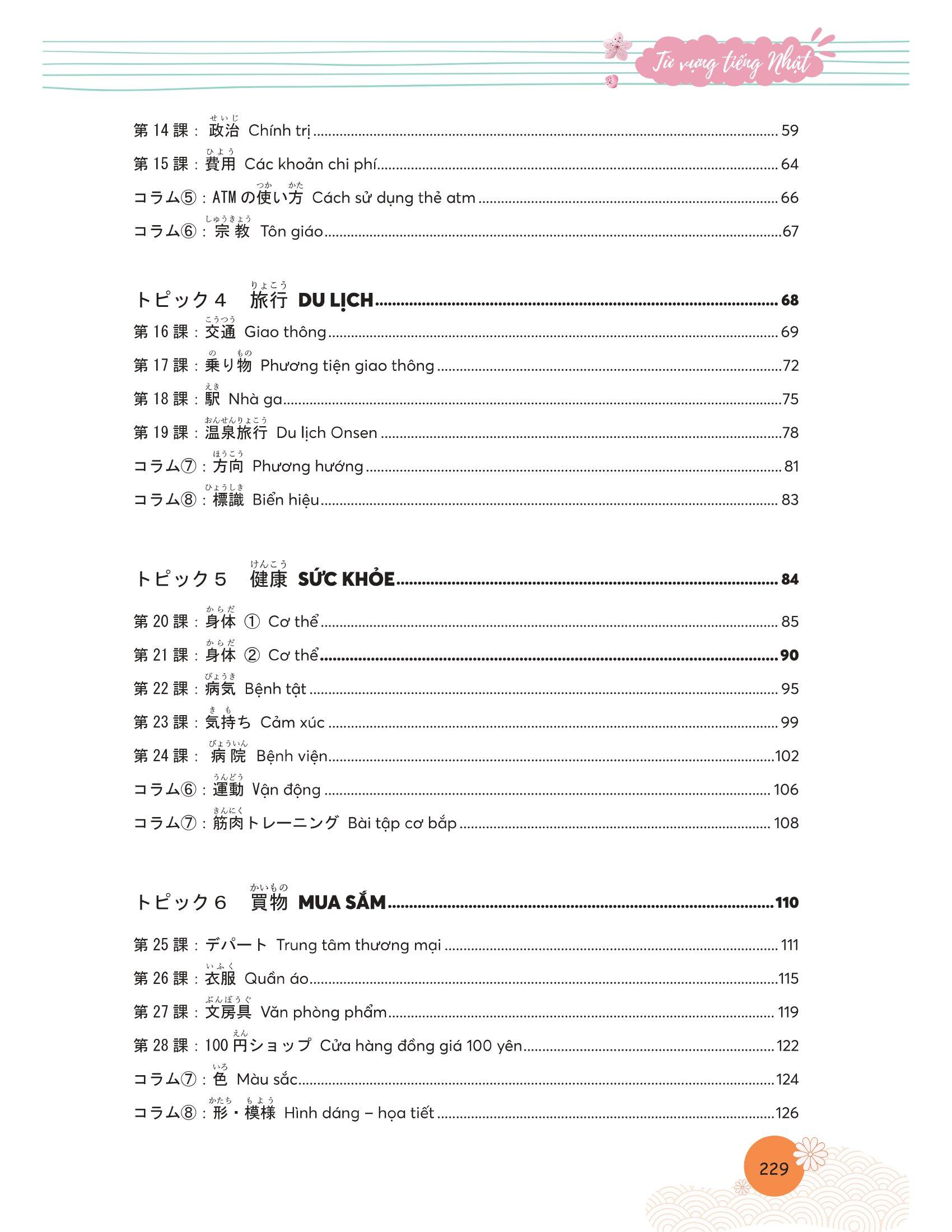 Với cuốn sách, người đọc sẽ nắm chắc hệ thống những từ tiếng Nhật thông dụng, dễ dàng học tập và tra cứu để có đủ vốn từ trong giao tiếp và trong học tập, ôn thi năng lực tiếng Nhật.