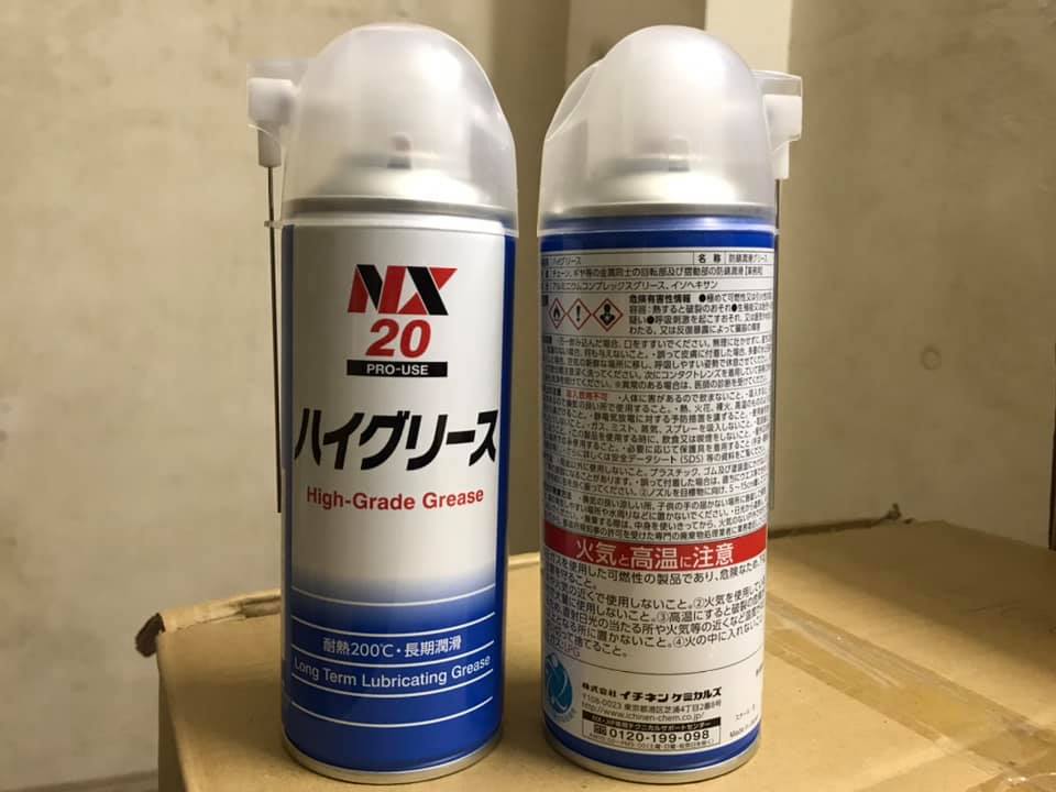 Mỡ bôi trơn chịu nhiệt NX20 Bình xịt Mỡ Bôi Trơn Chịu Nhiệt NX20 được thiết kế dạng chai xịt nên tiện lợi sử dụng, dễ dàng thẩm thấu vào các vị trí bôi trơn, chi