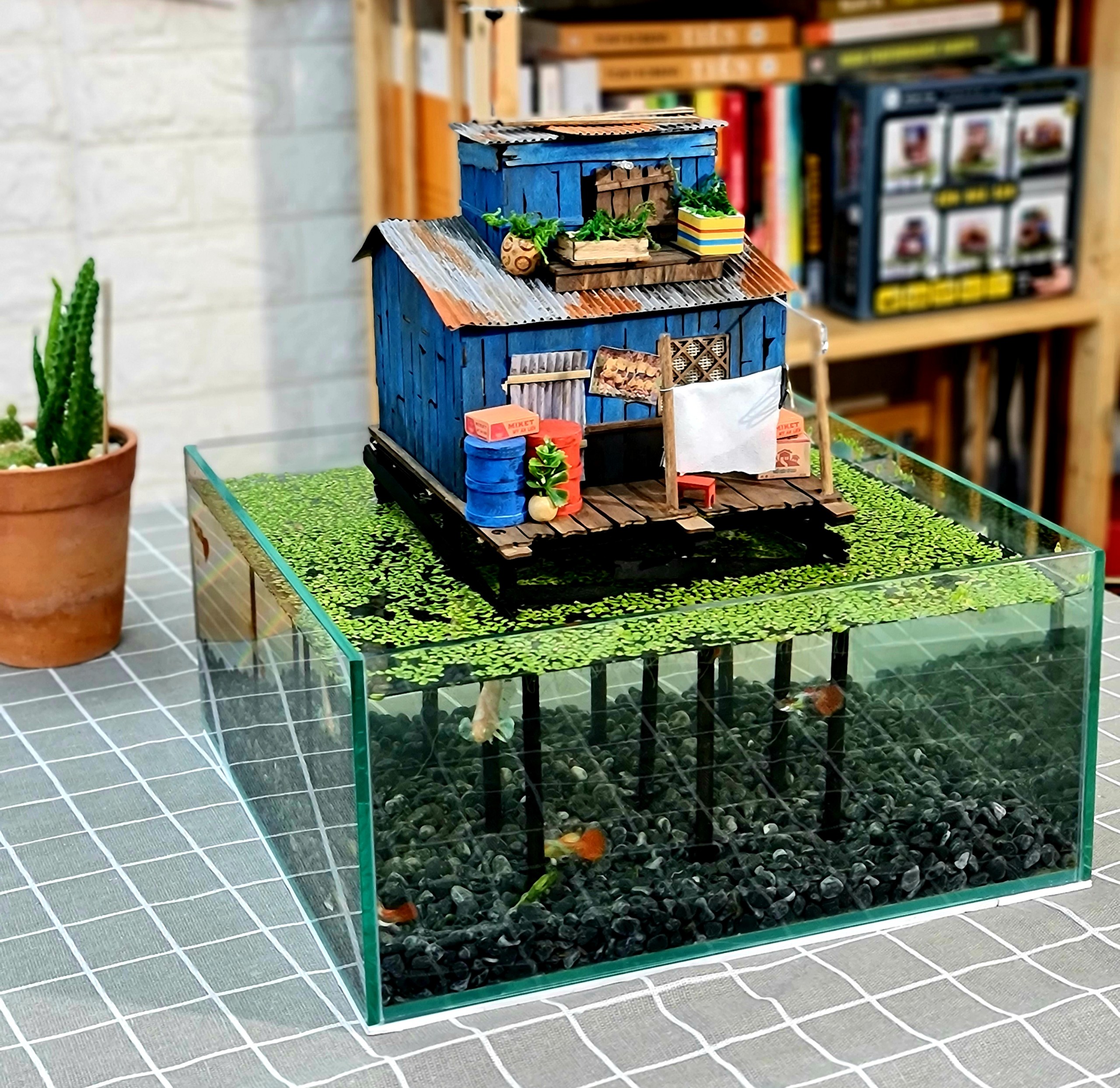 ✨Mô Hình Gỗ Sài Gòn Xưa Tí Hon Ký Ức Tuổi Thơ - Thế Giới Tí Hon - Xóm Nhà Sàn - NS05
