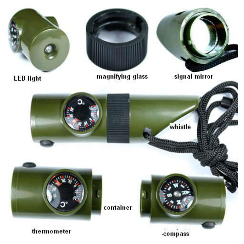 Nhiệt kế , còi , kính lúp , kính cứa hộ phù hợp cho những chuyến đi choi xa leo núi , đi rứng ngoại ô.