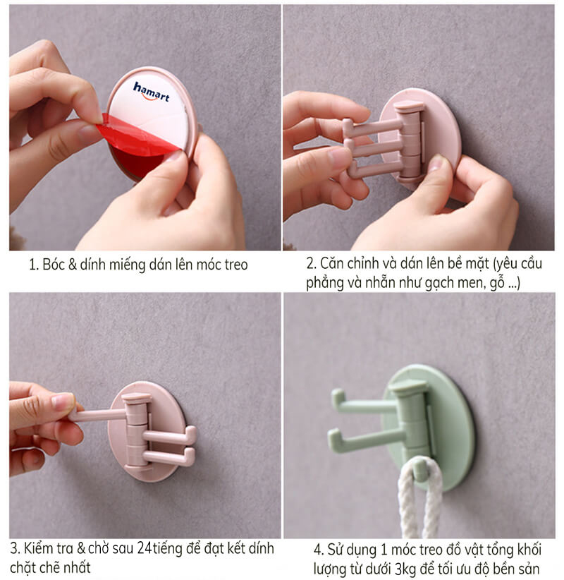 ✮Chất liệu ABS, không để lại dấu vết dán keo,không dễ bị rơi, móc có thể điều chỉnh khi cần thiết . Có thể treo các đồ vật gia dụng nhỏ,có nhiều công dụng và tiết kiệm không gian. Sức chịu tải tốt,có thể treo khăn ướt. Thiết kế ba móc nhỏ có thể xoay, góc độ sử dụng có thể tự do điều chỉnh .