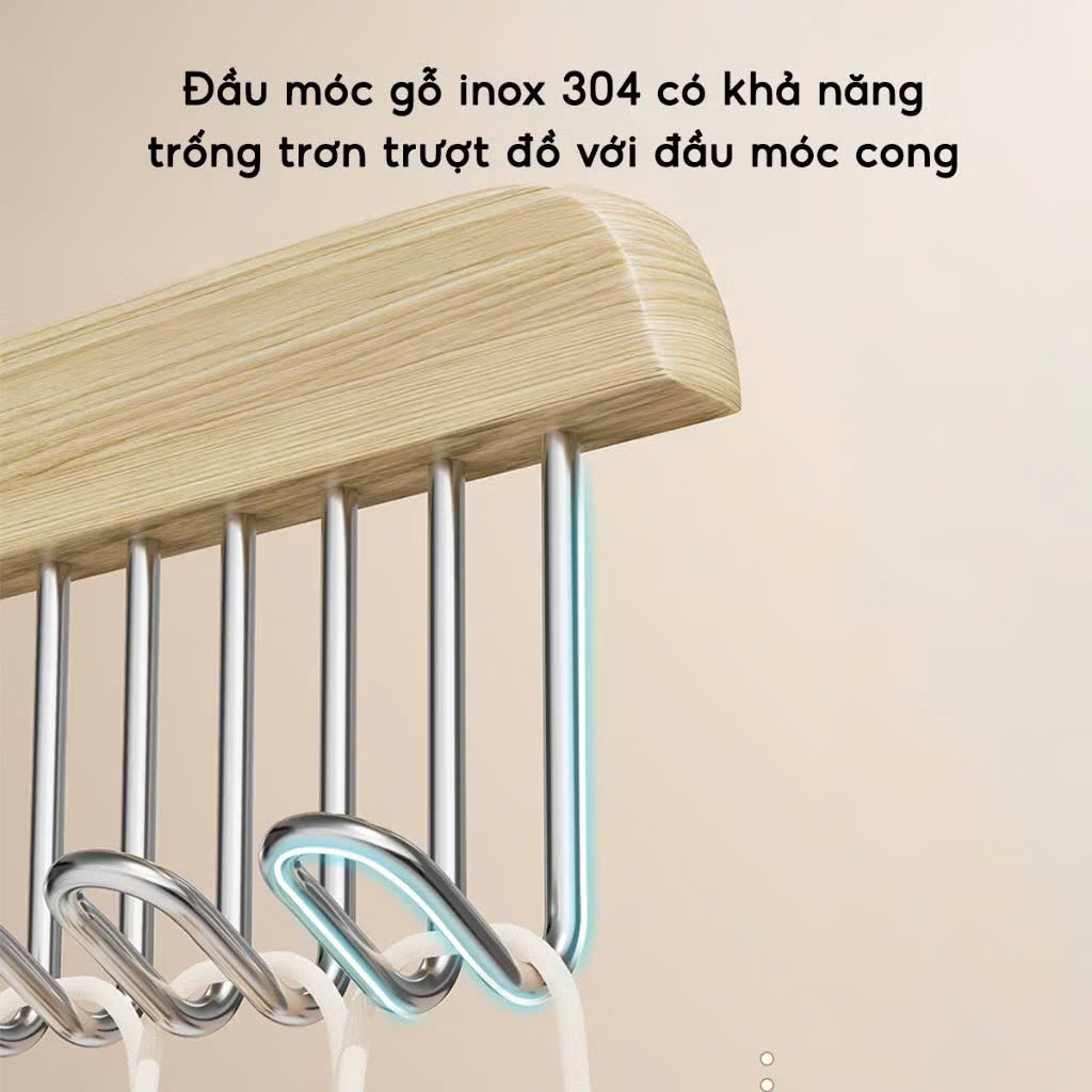 Móc treo áo 2 dây bra đa năng tiện lợi, giá treo 8 mắc bằng gỗ treo áo lót cà vạt thắt lưng túi xách * Thông tin móc phơi quần áo: - Chất liệu: