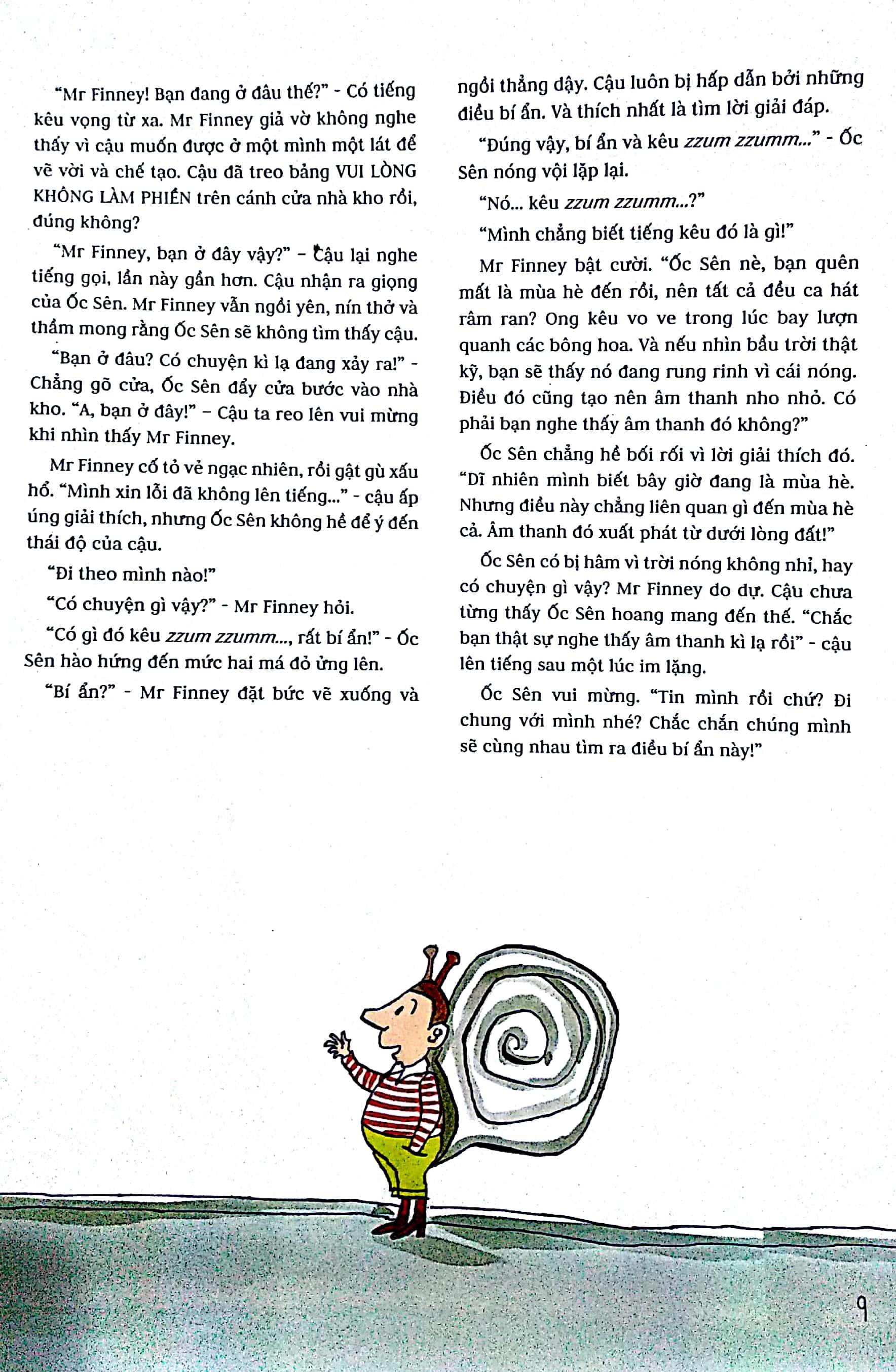 Mr Finney sống trong một khu vườn rộng lớn và cậu xem đó là toàn bộ thế giới của mình. Một ngày nọ, Pinky Pepper mang đến cho cậu xem những hình ảnh về thế giới bên ngoài, như sông suối, đại dương bao la, rừng núi hùng vĩ, thành phố với những tòa nhà cao ngất. Mr Finney bị thu hút bởi những điều này và cậu quyết tâm lên đường phiêu lưu khám phá thế giới.