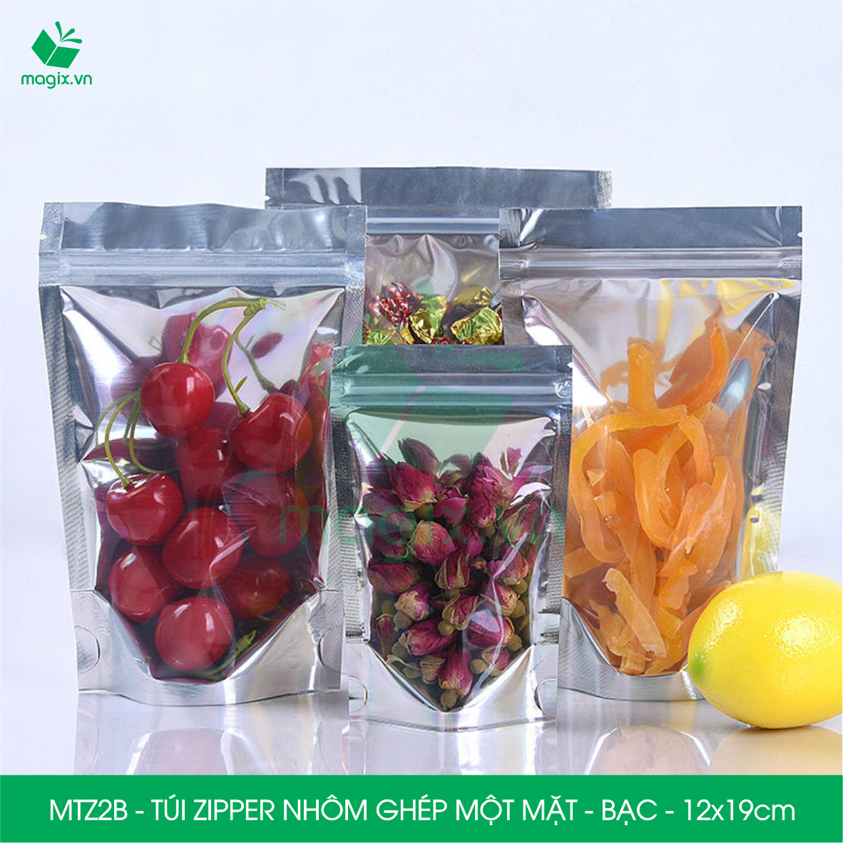 Túi Zipper một mặt bạc một mặt trong đựng thực phẩm, ăn vặt