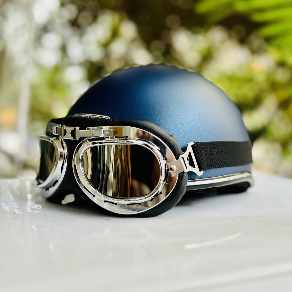 Mũ bảo hiểm nửa đầu Rona haly viền bạc kèm kính phi công bạc cho nam và nữ đi xe máy