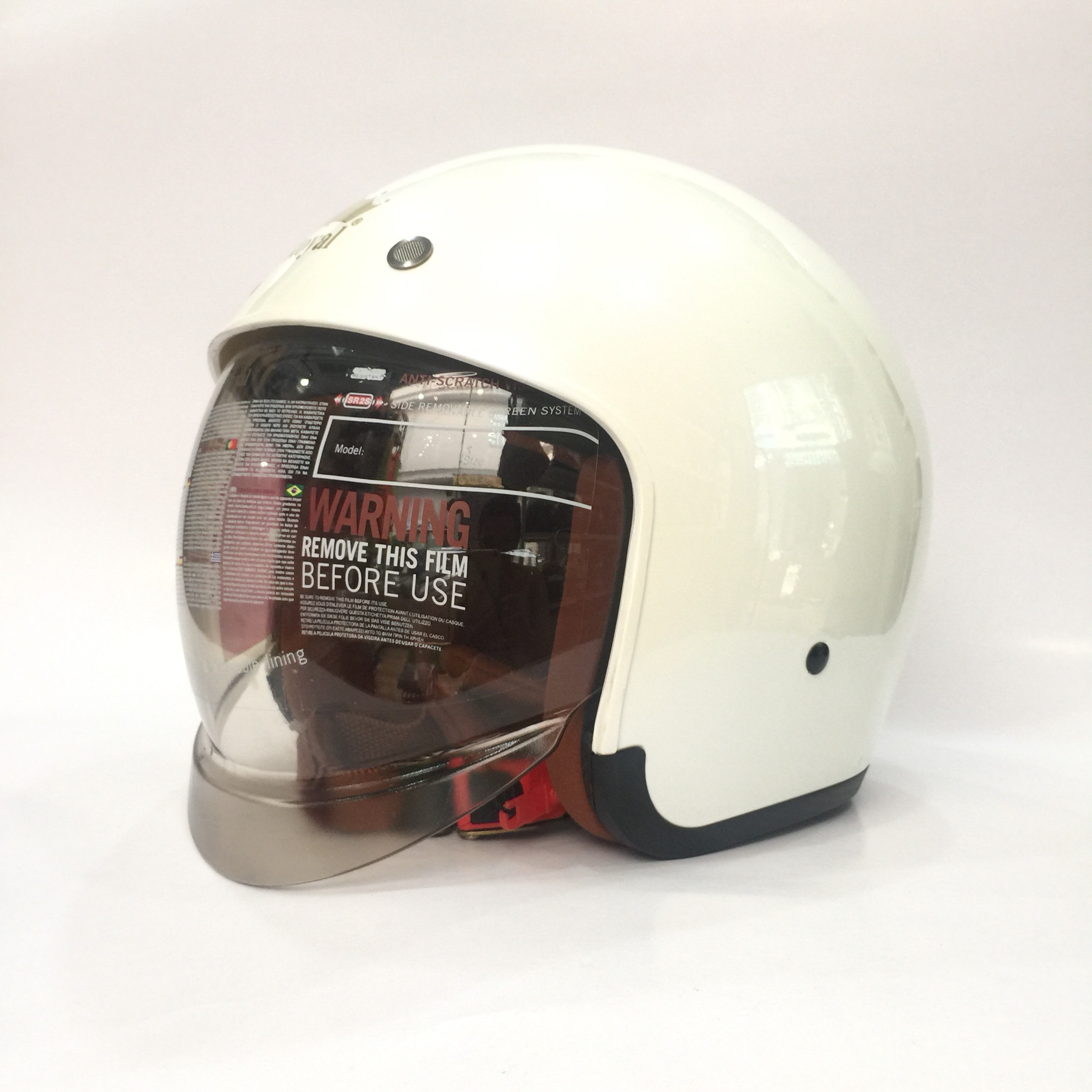 - Kính thẳng có 3 nút đồng gắn nón bảo hiểm - Có thể kéo mở lên xuống - Gắn chắc với các dòng nón Royal, Asia, Bulldog, Andes - Mặt kính đồng nhất, tầm