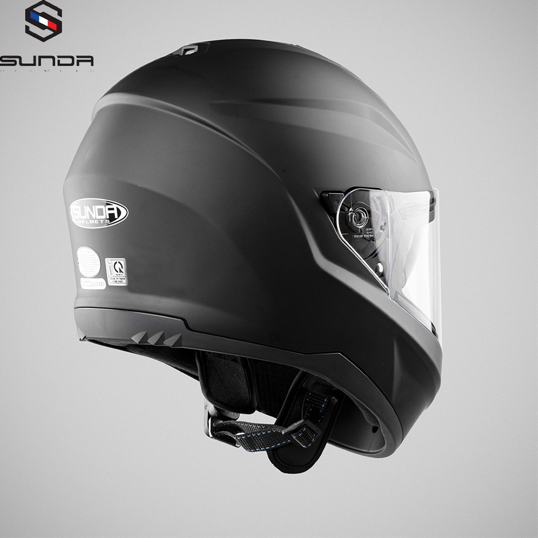 Nón bảo hiểm fullface Sunda 2000c đen nhám tem xanh: Nón được thiết kế nhỏ gọn, lòng nón sâu, phù hợp cho người có vòng đầu từ 55-59 cm - đây là size phổ biến