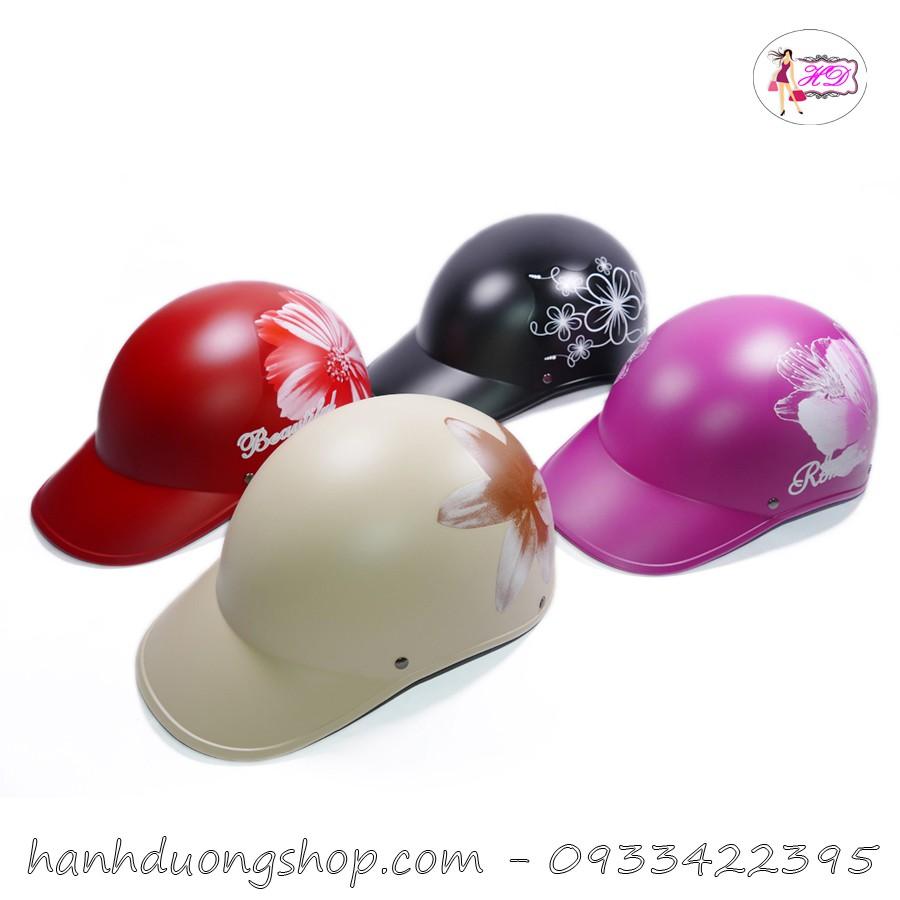 [ Hoa in ngẫu nhiêu ] Mũ bảo hiểm nữ đẹp in họa tiết bông hoa nón bảo hiểm có khoét đuôi dễ dàng buột tóc cao làm đủ kiểu