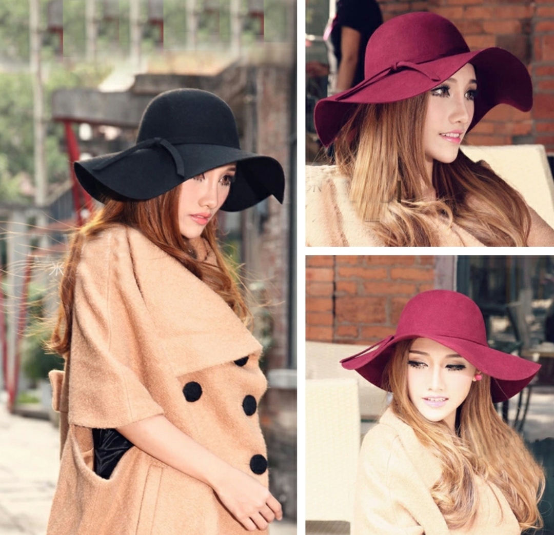 Mũ chống nắng rộng vành nữ nón đi biển đẹp fedora Chất liệu nỉ Hàng nhập