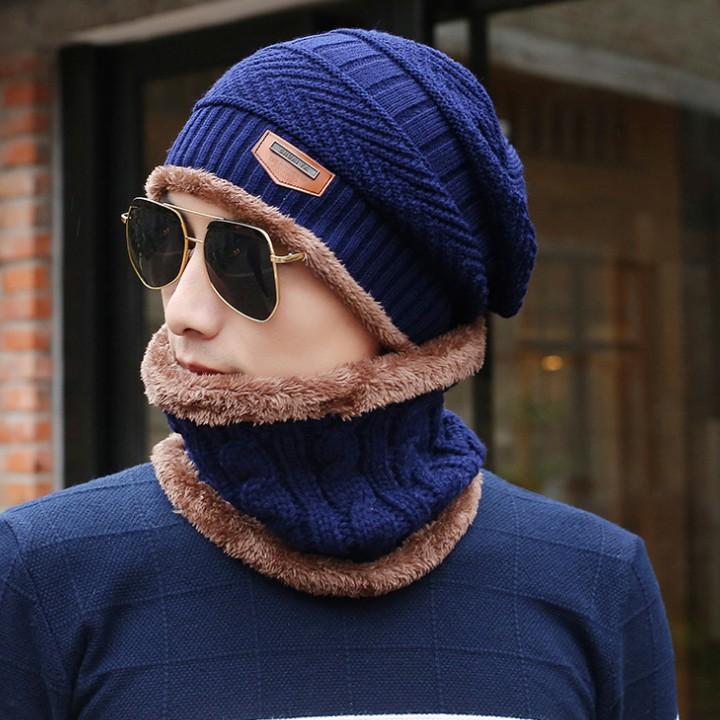 PVN55244 Mũ len cho nam kèm khăn choàng cổ mùa đông giữ ấm tốt
