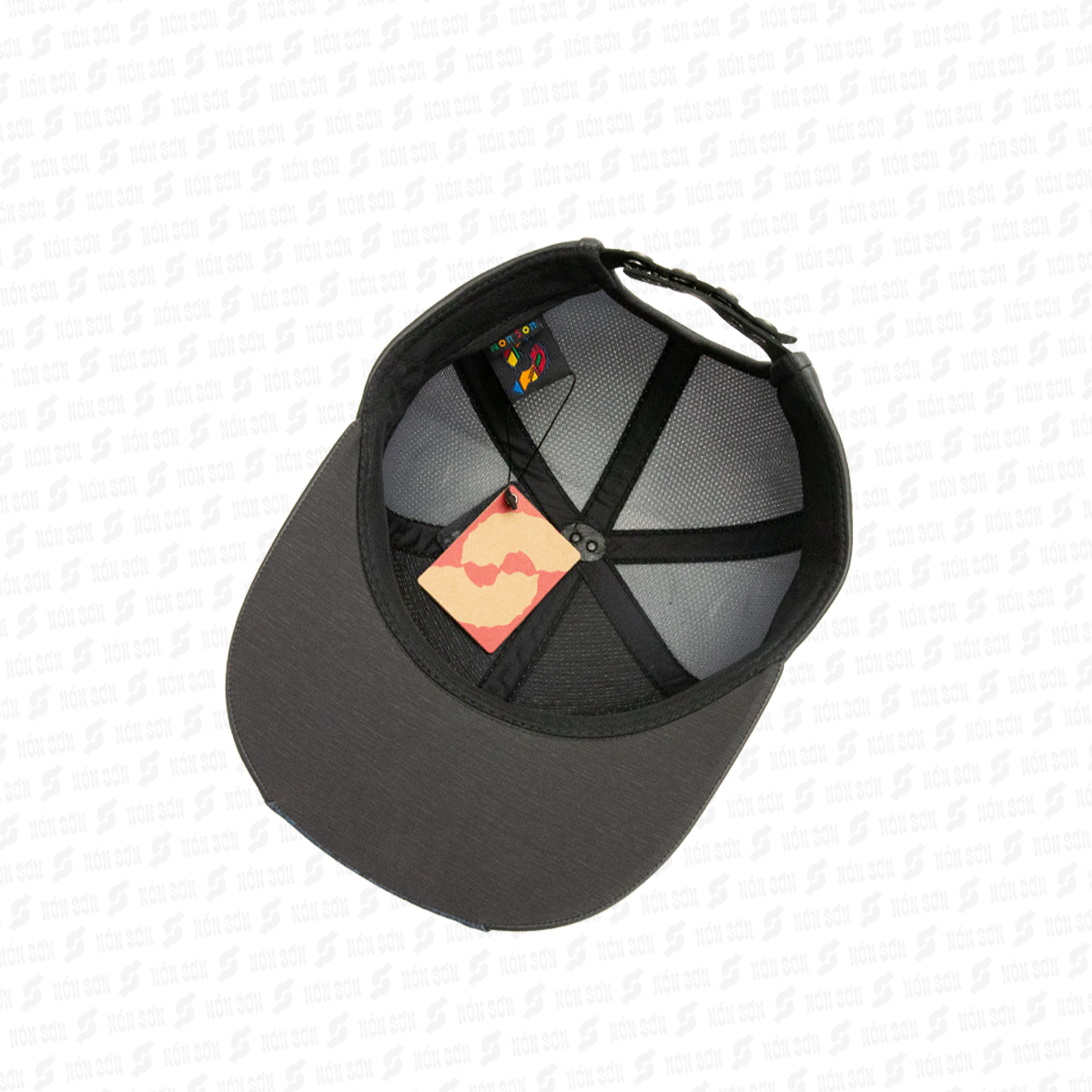 - Sử dụng kẹp phơi vào đai bên trong nón (vị trí giữa lưỡi trai), sao cho lưỡi nón hướng phía trên và dây đuôi hướng phía dưới.